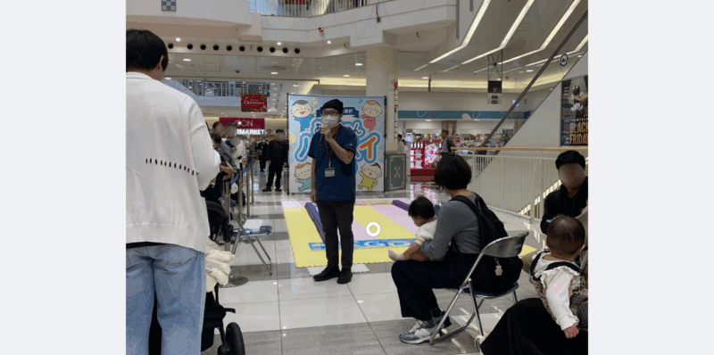 2025年11月5日にイオンモール日根野で開催された赤ちゃんハイハイれぇすを当院が協賛しました。僕も2回目(13時から)のイベントには初めから立ち会わせていただき、当院を受診されたことのないお子さんもたくさんご参加いただき、元気いっぱいの赤ちゃんたちのハイハイ姿に心温まるひとときを過ごすことができました。参加いただいたお子さんへ、当院保育士が作成した「参加賞メダル」と「当院パンフレット」と「離乳食相談無料券」をご参加の皆様に配布いたしました。後日、無料券を利用した離乳食相談を参加者の方に受けていただきました。
